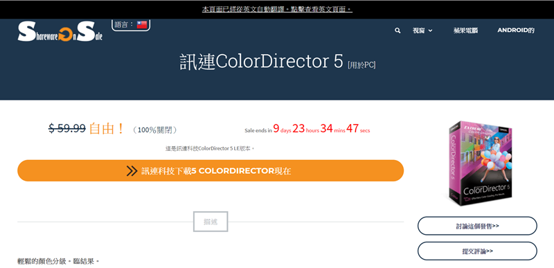 威力導演 PowerDirector 15 LE 又來了,上次沒下載到的快去下載(僅PC 版)」這篇,昨天從日本回來又看到旗下知名的調色軟體「ColorDirector」釋出的限免訊息,這套軟體是藉由色彩配對工具來統一素材的色調,內建 HDR 特效及多樣化風格可套用,並支援 360 度全景影片,功能相當強大,可說是專業級影片製作必備工具。