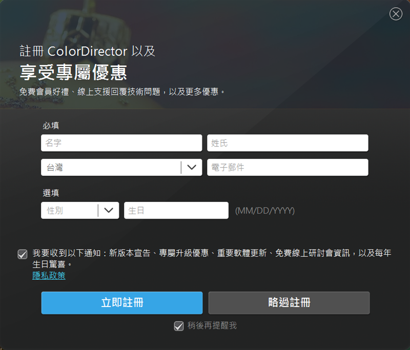要不要註冊、取得優惠訊息等就看個人,可以先略過。