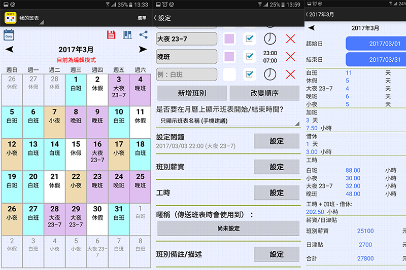 - 班表小幫手 - 清楚記錄與管理不同的班別,還有鬧鐘提醒及分享功能