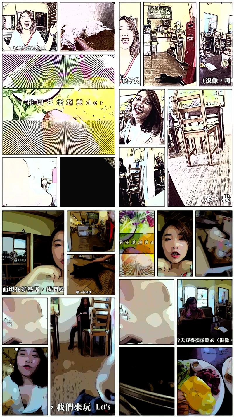 產出的連環漫畫以單張拼圖的方式呈現,劇情並沒有連續,據 Google 說是 AI 幫你計算出這段影片的重點是哪些畫面,再把它們變成漫畫,點圖片就可儲存或分享出去。