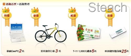 前幾天站長分享了《愛水送鐵馬》的抽獎活動後,不僅是水利署現在連交通部也來囉,不過交通部更大方,他們的大獎是《Eee pc》哦!獎項中也有鐵馬啦,快去解題抽獎吧!!