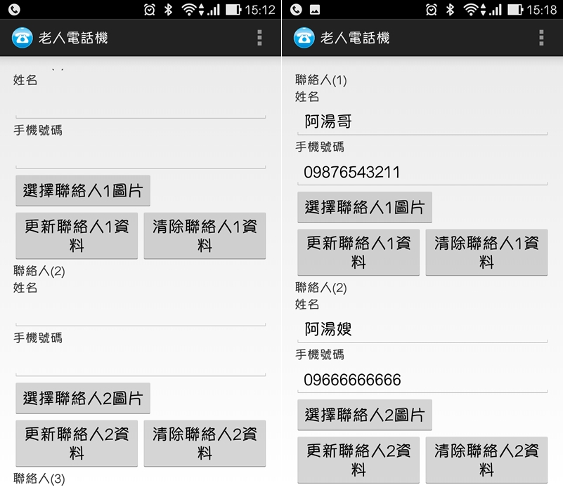 首頁 › 手機應用教學 › 老人電話機 - 適合長輩或兒童使用的簡易通訊錄,按下圖片立即撥打電話 老人電話機 - 適合長輩或兒童使用的簡易通訊錄,按下圖片立即撥打電話 發佈日期:2018/1/1 作者:阿湯 分類:手機應用教學 前陣子阿湯整理 2017 年最實用的 APP 時,意外發現這一篇「智者桌面 - 長輩必備 APP,讓手機變成大字體、大按鈕、大圖示」名列前茅,原本以為應該蠻多人的智慧型手機都有內建簡易模式,但可能沒有 APP 版那麼完備吧,今天阿湯分享的「老人電話機」也是以畫面簡易為訴求,讓人一眼就能對通訊錄進行瀏覽與編輯,完成後點聯絡人圖片就能輕鬆打電話,不用翻半天滑到眼花。 老人電話機使用分享: 使用步驟非常簡單,就輸入聯絡人姓名、手機號碼再加一張圖片即可,沒有雜七雜八的資訊空格(例如 Email),如果要更改再重新編輯後點更新,或清除資料,相當直覺。 匯入的頭像會在 APP 最上方並附上名稱,輕輕一點就會自動撥打出去,不用翻半天還找不到,相當適合長輩或兒童使用啊。 老人電話機相關資訊: APP 下載:Android 延伸閱讀 iPhone 教學 2026:5 招必學 iOS 19 隱藏技巧,釋放 Apple Intelligence 強大潛力 2026/1/29 【LINE教學】2026最新版!5招必學隱藏技巧:一鍵釋放空間、聊天室分類與AI實用功能 2026/1/26 反詐戰警 - Whoscall 的替代方案,免費一年試用,還有 VPN 網路防護功能 2024/12/11 如何直接從 iCloud 下載全部的照片?還能一次備份在 iCloud 上的各種資料 2024/9/23