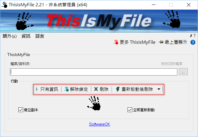 操作面板很簡單,匯入檔案後選擇查看資訊、解除鎖定、刪除、重新啟動後刪除。