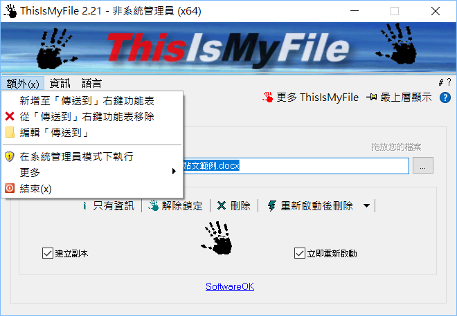 也可以將程式放到右鍵功能表,用起來更方便,就看需求了。
