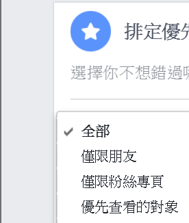這裡有幾個選項可切換,看是要瀏覽全部、僅限朋友或僅限粉絲專頁。