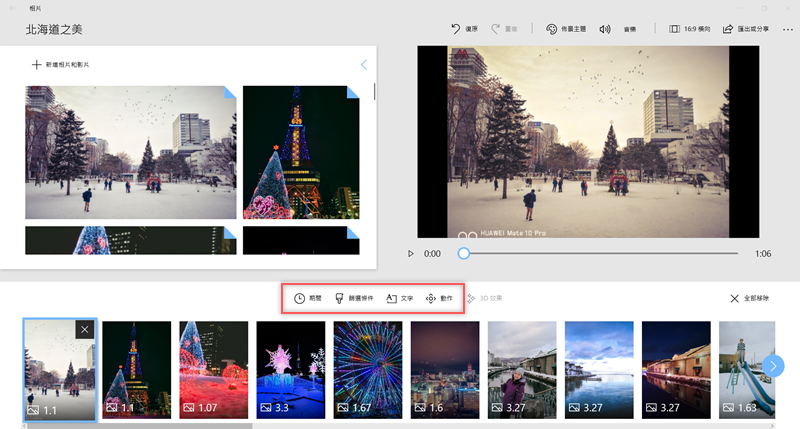 如果沒看過上一篇怎麼一秒變影片的朋友可能要回去看一下,這裡就用上篇隨機組合的影片來示範,接下來要使用的功能都在中間那排。