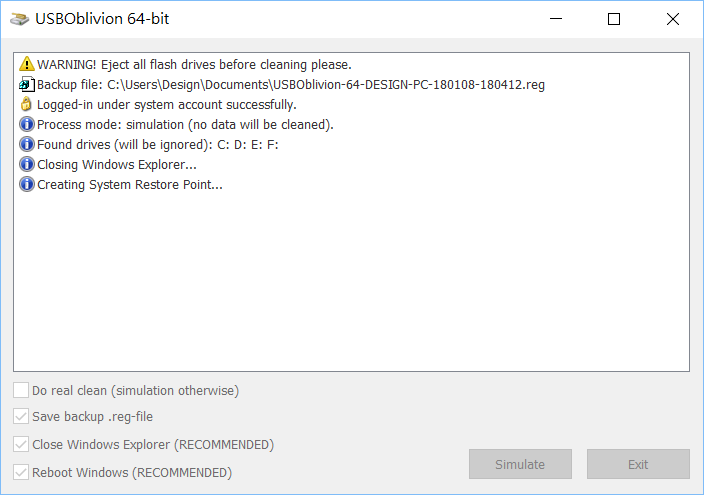 啟動後會要求你先退出所有 USB 連接,並提供模擬刪除(預設未勾選「Do real clean (simulation otherwise)」)及實際刪除,建議先模擬一次預覽要刪除的項目,點「Simulate」。