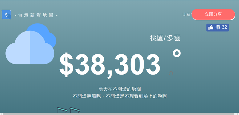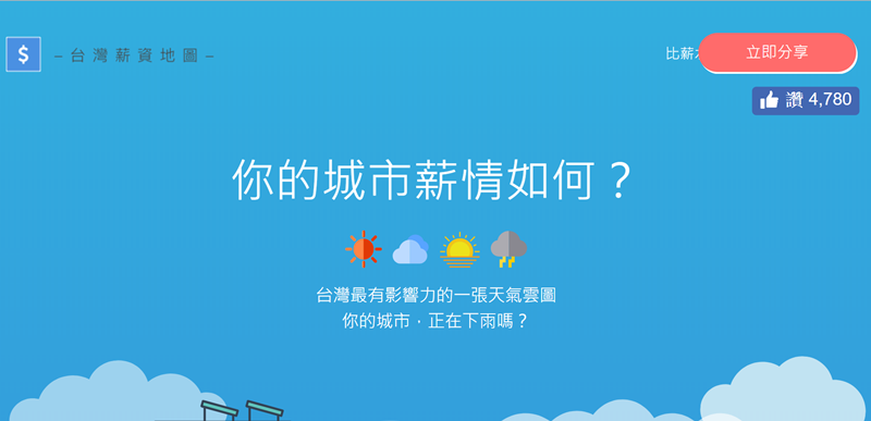 這個網站是先用天氣來顯示每個縣市的「薪情指數」,來看看你的城市正在下雨嗎?