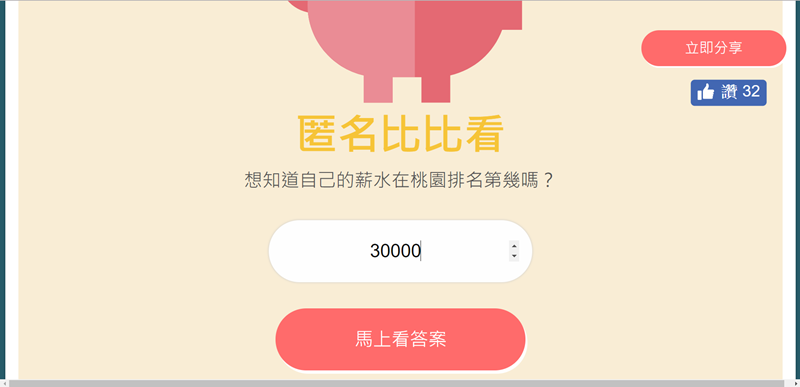 當然也可以輸入自己的薪水來比比看,假設三萬好了。