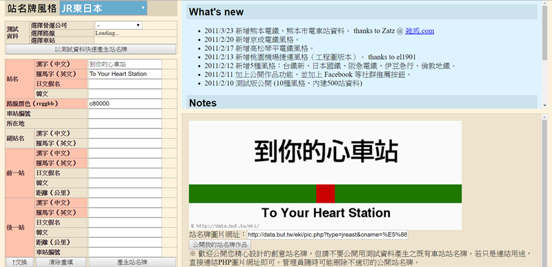 選個 JR 東日本好了,在左欄輸入中英文主副標點「產生」即可,可右鍵另存或複製底下網址分享。