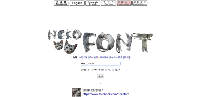 來個可愛的實體貓咪字體,輸入後選擇尺寸點生成。