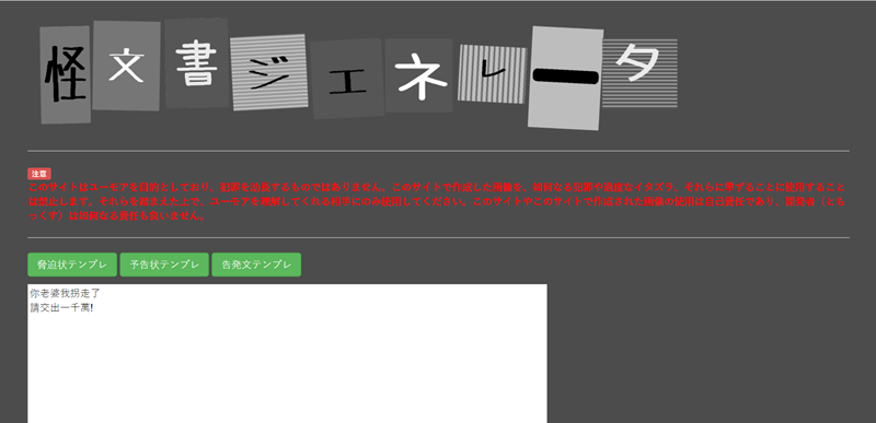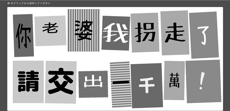 柯南或其他卡通只要出現犯人留下來的信,都是在不同的紙張、剪下要用的文字組成,這款就是類似的效果,除了威脅還有通知和聲明的樣式。
