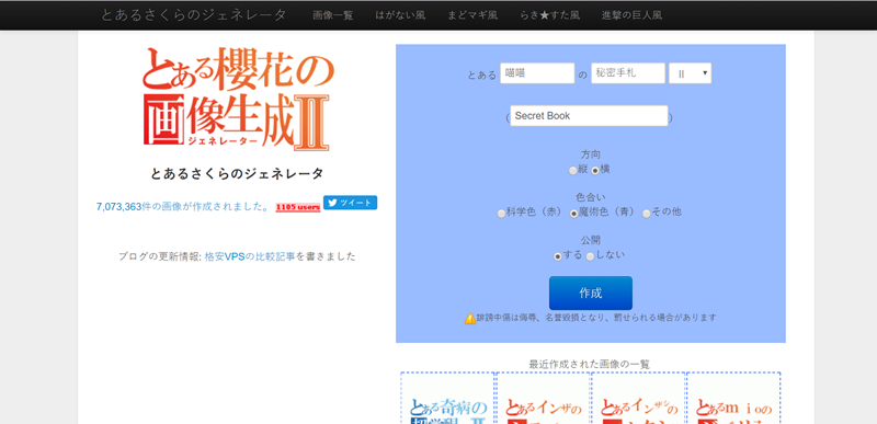 也是日系的生成器,輸入內容、選擇文字方向與色調、要不要公開發布後,點作成。