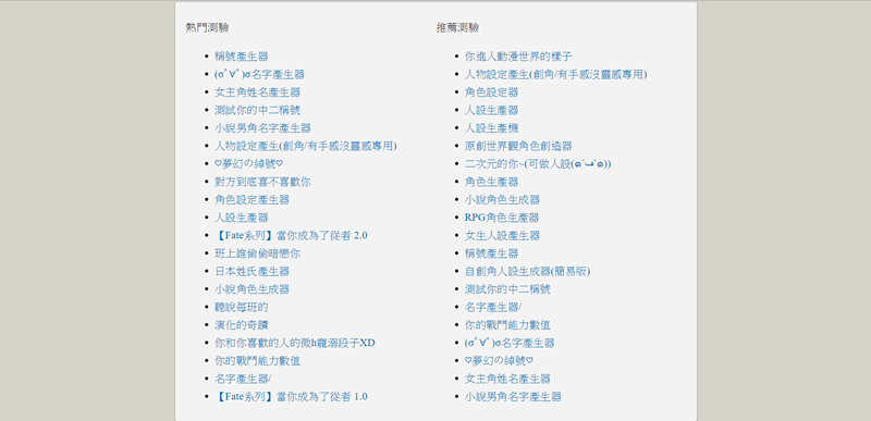 其他還有相當多有趣的產生器及測驗連結,網站還提供自行建立,點進去玩玩吧。