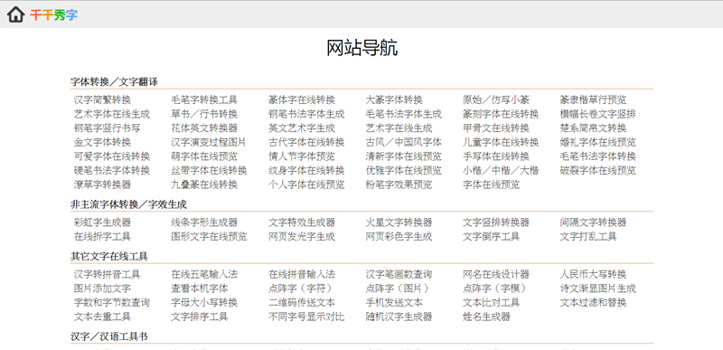 一看就知道又是一個資源豐富的網站,除了字體轉換、特效生成,還有字符編碼、加密解密等線上工具讓大家運用。