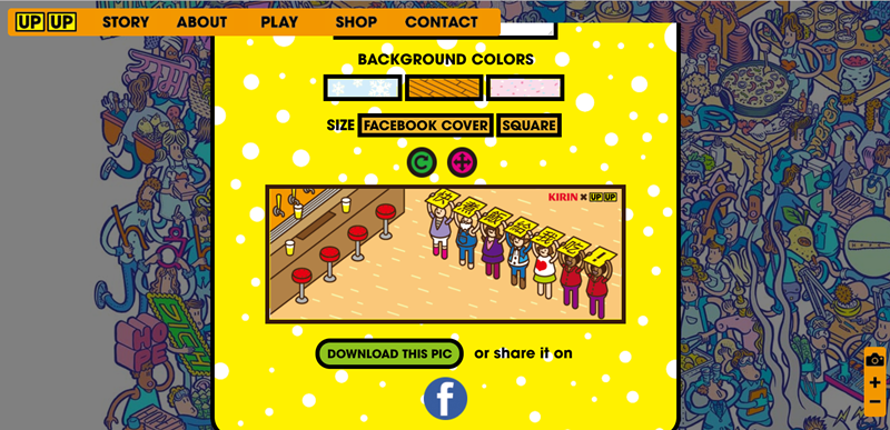 內建三種背景樣式,還能改成 FB 封面的尺寸,完成後點 Download 或快速分享到臉書。