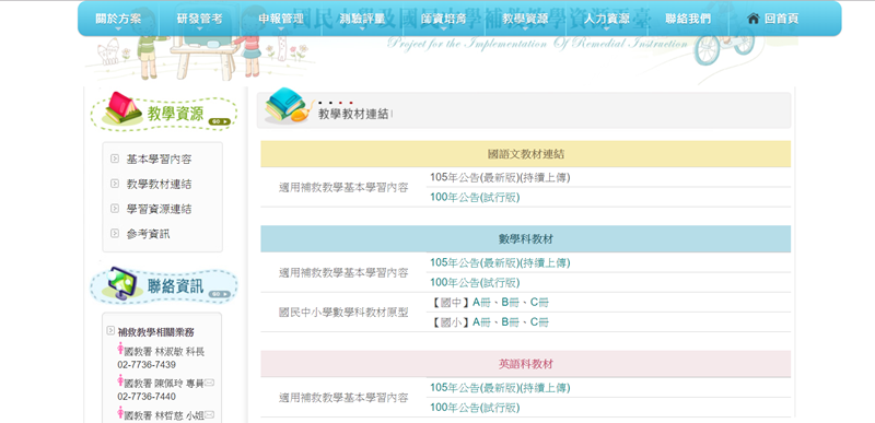 教學教材連結的資源比較多,包含國英數的教材原型。