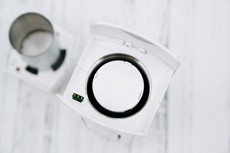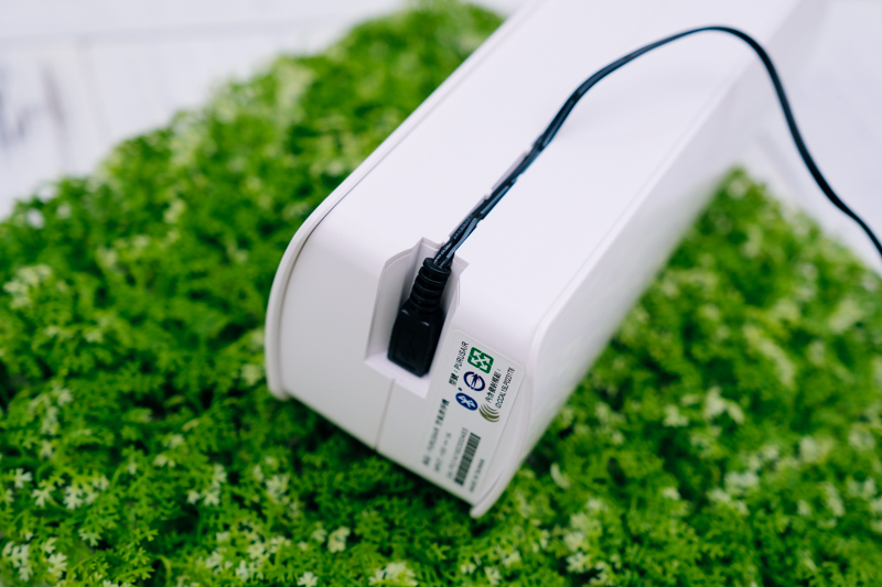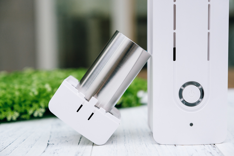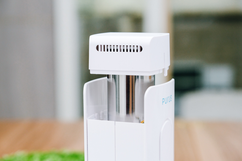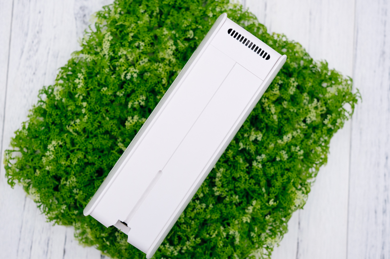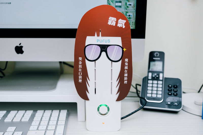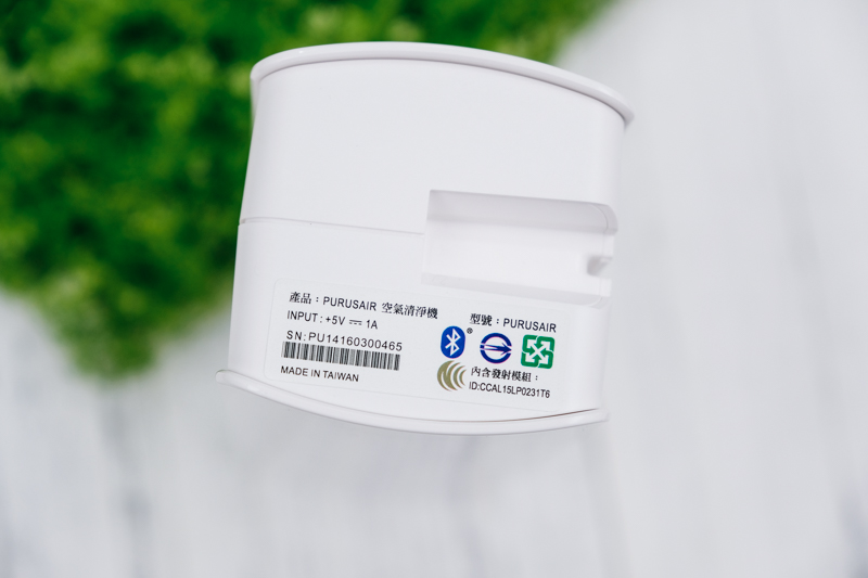 既然是桌上型的空氣清淨機,當然還是要讓他站起來讓大家看一下,順帶一提,PURUS air 除了插電使用外,本身內建有 1100mAh 的電池,大約可使用 4 小時左右,所以平常如果外出去咖啡廳或其他室內空間,也能攜帶去使用,如果 4 小時覺得不夠,那就帶個行動電源吧,用一整天都沒有問題。