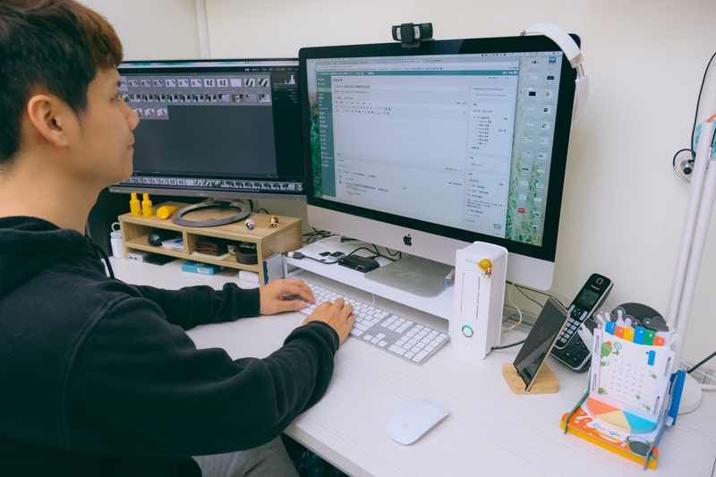 阿湯雖然是在家工作,但是擁有自己的辦公桌是一定要的(其實平常沒有那麼整齊的...),這樣才會有工作的感覺啊,大家在用的時候記得要像阿湯一樣將出風口朝向自己,畢竟這是桌上型使用的空淨機,體積小,並不是用來濾淨全室內的空氣所使用的,但如果在辦公室裡人手一機的話那應該是有整間清淨的效果...XDDD