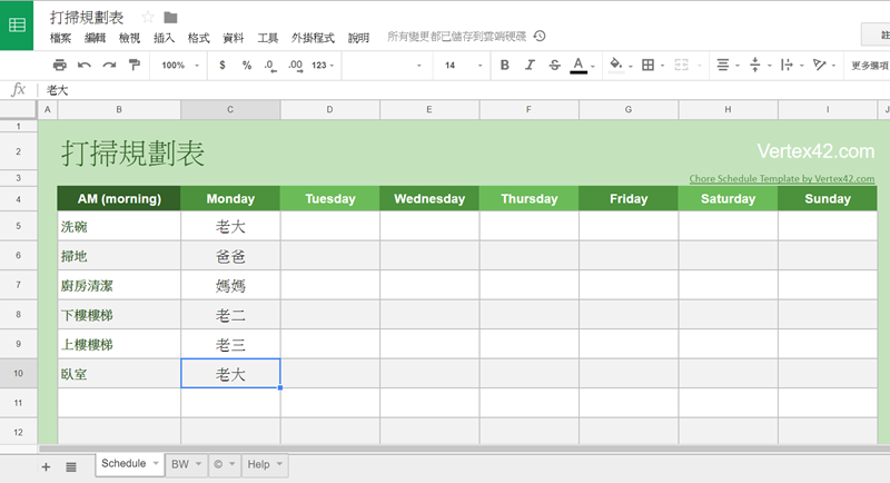 使用上當然可改成中文方便理解,套用現有設計的好處就是改一下就能拿去用,不需要自己想要怎麼去規畫一張表格,而且檔案都放在 Google 雲端,不佔電腦空間也不容易不見。