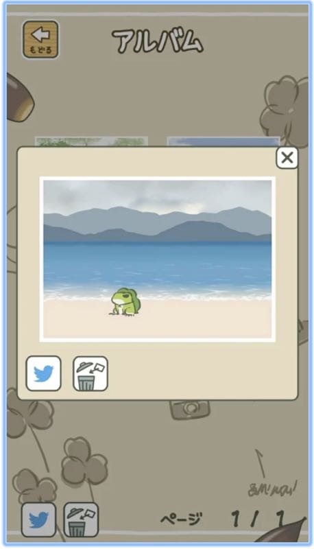 也許就是這樣簡單、單純、好上手、充滿為人父母(?!)的不定挑戰,也讓這款「旅行青蛙((旅かえる))」即使只有支援日文,但卻受到許多朋友的喜愛和支持。 所以我們到底要做些什麼?嗯... 大概就是收池邊的三葉草、去商店買旅行用品、打包行囊、送小青蛙出門、每天打開 app 看小青蛙到底回家沒、看信箱有沒有寄明信片回家、收池邊三葉草、去商店買旅行用品、每天打開 app 看小青蛙到底回家沒、看信箱有沒有寄明信片回家...... 這樣讓人充滿煎熬的循環吧... 啊,還有... 看看右上角的圖鑑,我們蒐集到了哪些旅遊名產,也是一個很容易讓人著迷的樂趣呀!!!