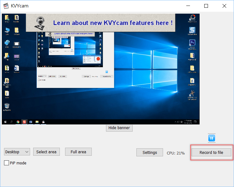 Movavi Screen Capture Studio 就不錯用,今天要分享的「KVYcam」除了有前面提到的那些功能外,還能讀取你的 WebCam,並提供畫中畫功能,讓你可以一邊視訊一邊看影片,或是操作桌面,等於是螢幕上能顯示的畫面都可以錄製起來,用在教學相當方便。