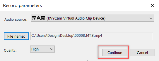 然後選擇音訊來源及畫質,理論上 File name 這裡應該要可以輸入檔名的,可是阿湯不知道為什麼不能用,必須點下去後選擇一個 MP4 檔才行,阿湯只好先選擇一個現有的影音檔,再覆蓋過去。