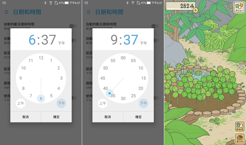 將現在的時間往後調三小時,這是三葉草預計長滿的時間,再進入遊戲。