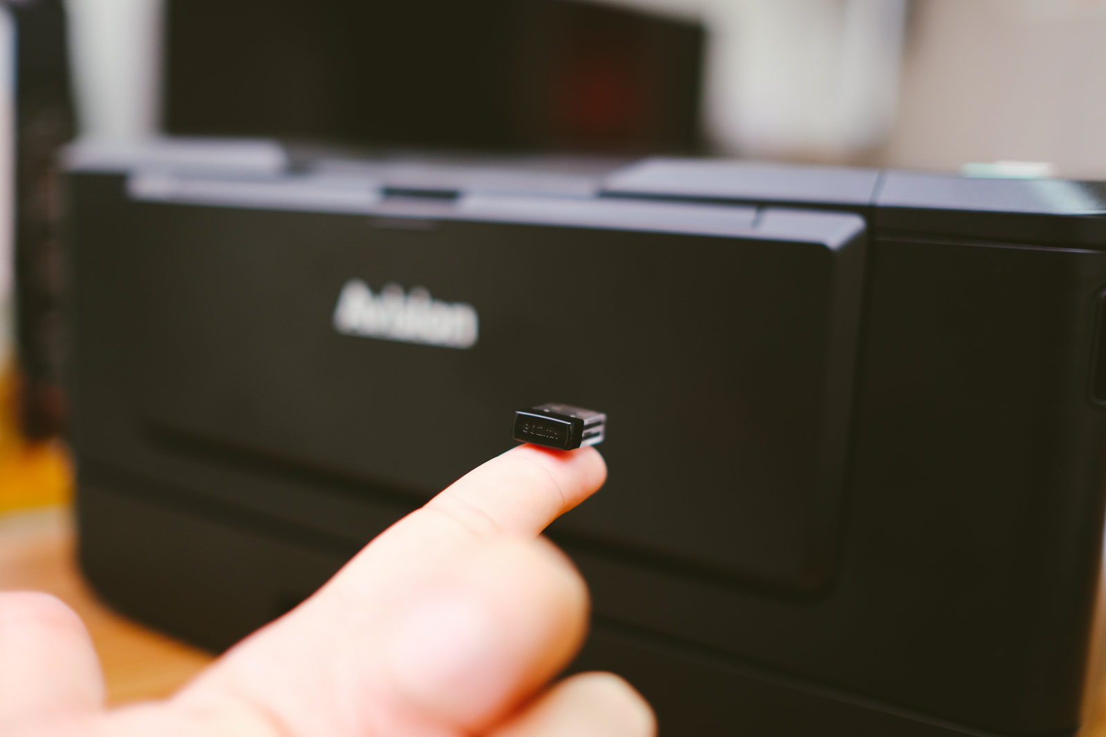 可以安裝在印表機的側邊,同樣接上後方的 USB 連接埠即可。