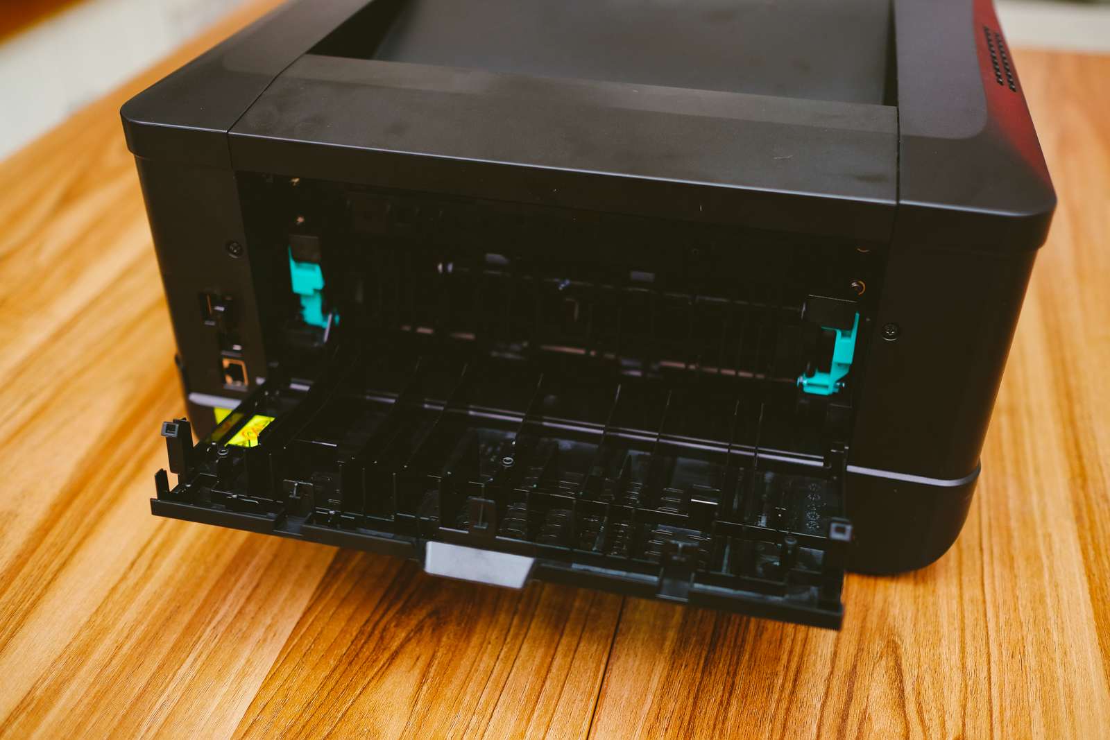 當發生卡紙時,可以透過背面打開查看排除。