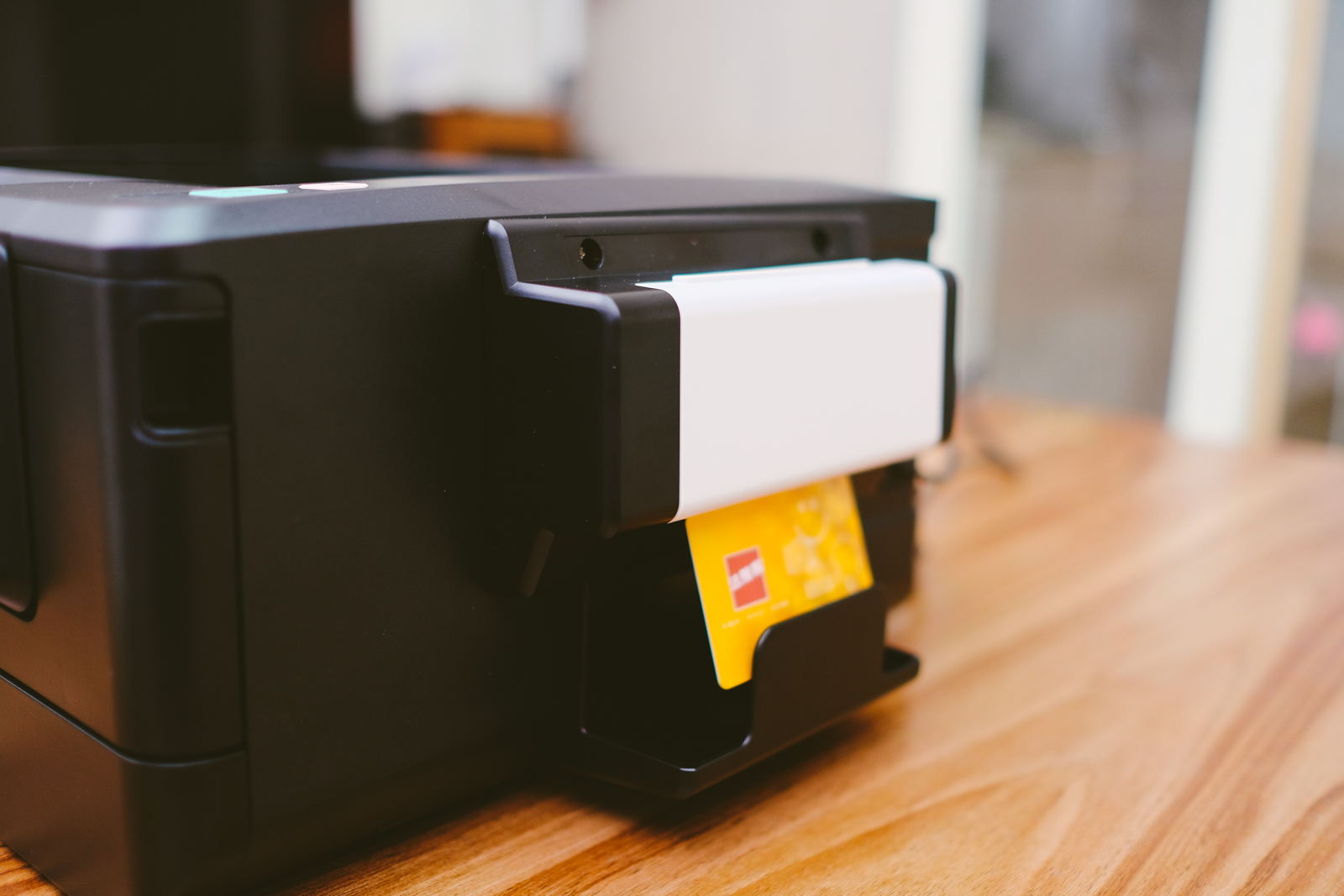 另外要用到證件複印的話,可以加購證件複印配件,這比多功能事務機的複印來的更加便利,因為多功能事務機是要將證件正反各放置一次後印出,透過這配件的話,只要投入證件就搞定複印。