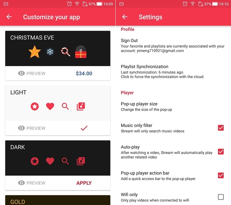 付費可以去廣告,也能更改成喜歡的按鈕設計,其他像是視窗尺寸、自動播放、只在 Wi-Fi 模式播放等功能都能調整。