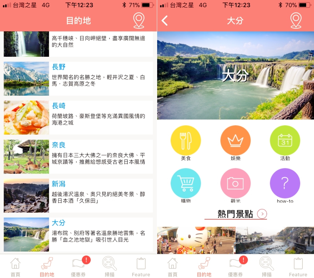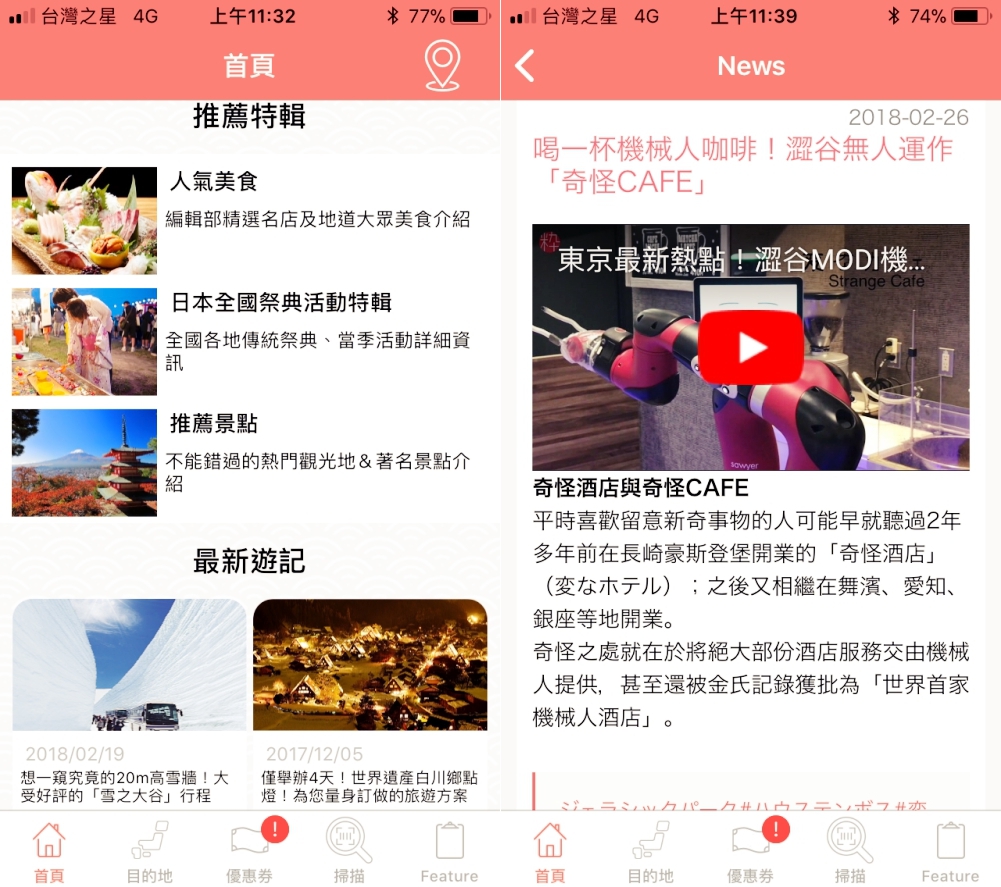首先進入 APP 首頁時,會包括最新消息、人氣場所以及遊記等資訊,老實說阿湯要介紹這款 APP 前都在想應該不用寫太多吧,因為介面實在太簡單易用,相信大家很容易就能夠上手。