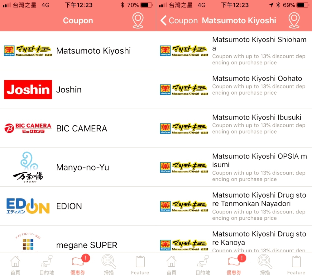 只要去日本觀光,幾乎大家都會準備藥妝店及 BIC CAMERA 的優惠券,很多人都會去網路搜尋來使用,有了 IKIDANE NIPPON 之後就不需要了,目前裡面除了很多人會買的大國藥妝店及 BIC CAMERA 的優惠券之外,還有 Joshin 也是買家電、3C 產品必逛的地方。