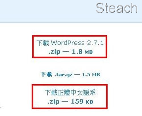 上面載點為Wordpress程式下載,目前版本為2.7.1,下面載點為Wordpress正體中文語系檔