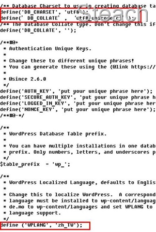 開敫wp-config.php找到以下內容(可使用記事本開啟即可),輸入剛剛創建的SQL資料庫的連接資訊