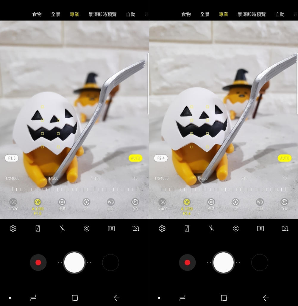 很多人會想說同一鏡頭可以切換雙光圈有什麼優點?為什麼不就 F1.5 一個大光圈就好,以自動模式拍攝下,只要光源足夠都會自動以 F2.4 這光圈值進行拍攝,而昏暗或夜間光源不足下則會自動採用 F1.5 這光圈值,如果想要手動切換可以使用專業模式進行切換。