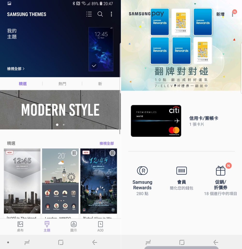 其他部份阿湯也推薦一些我自己常用的功能,像是可以隨時變更主題或桌面的 Samsung Themes,出門在外消費必備的 Samsung Pay(我連出國也用的很頻繁),而現在用 Samsung Pay 還可以累積點數用來換取商品。