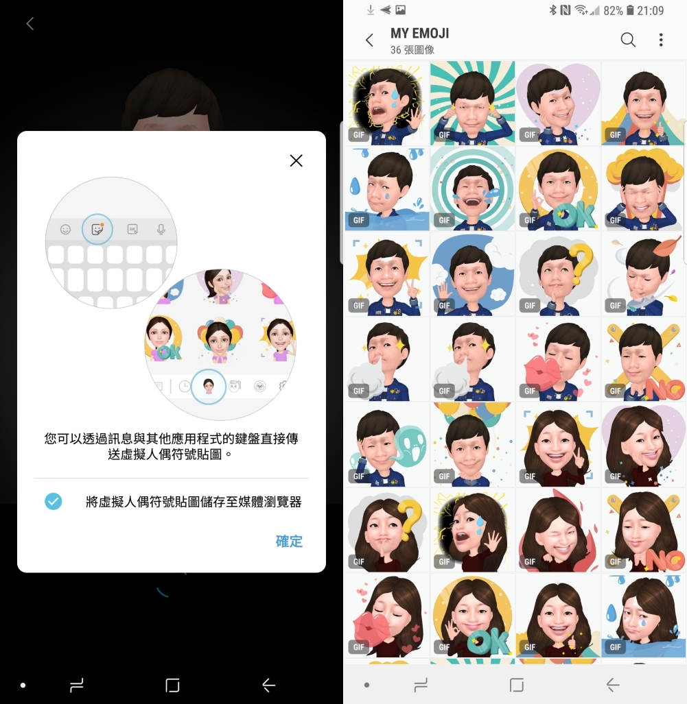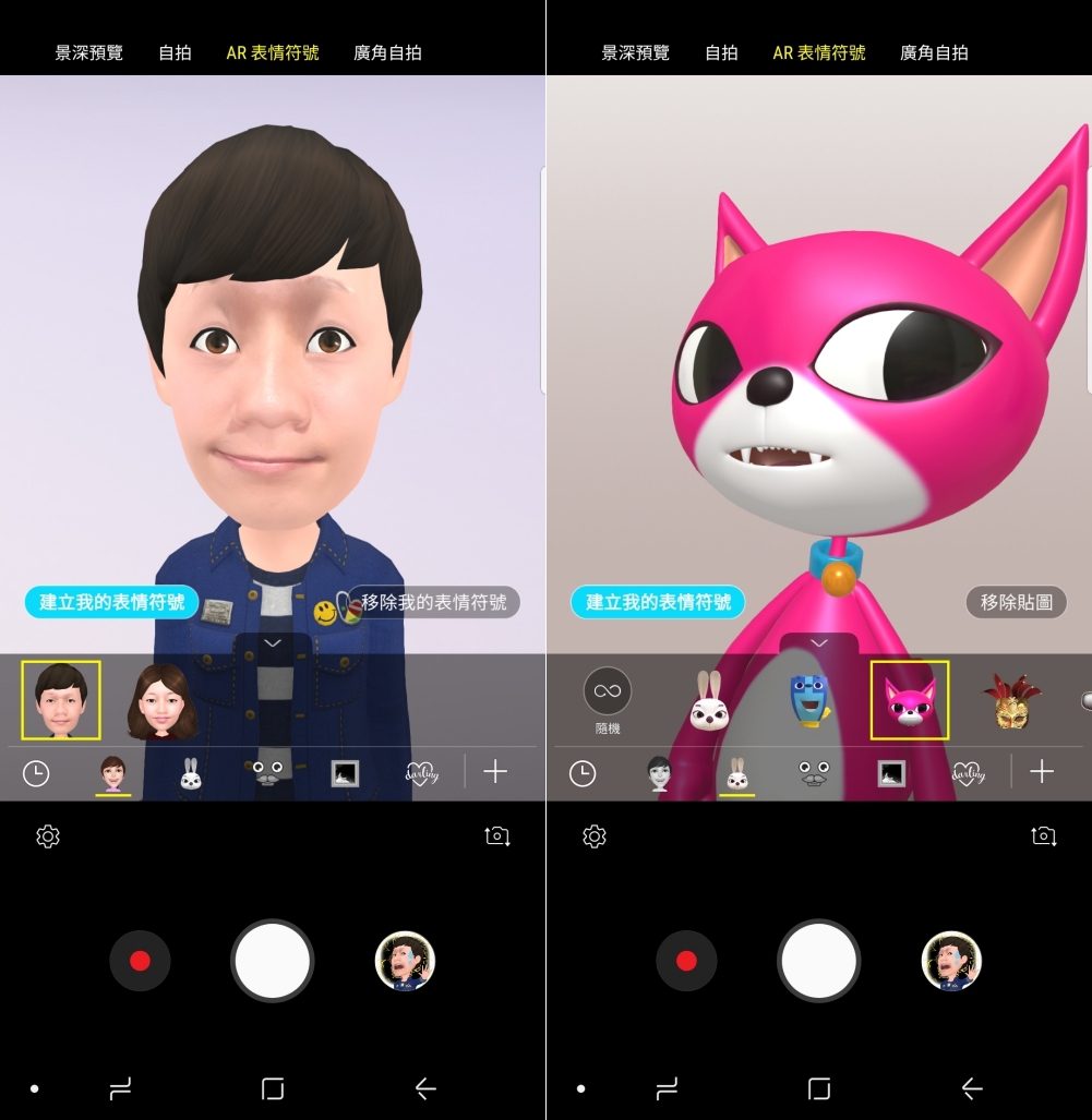 除了自建 AR 虛擬人偶,在先前 Galaxy S8 上就已經有的可愛動態特效貼圖也整合到 AR 表情符號裡,光是和朋友玩這些就可以耗掉不少時間了。