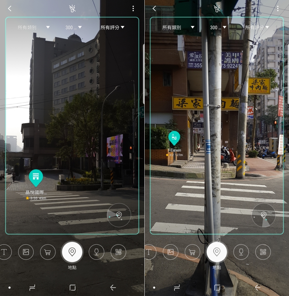 Bixby 2.0 帶來的地標功能更是實用,原本阿湯以為只要有 Google Maps 就可以去到任何地方,但沒想到身邊的朋友還真的蠻多人不會看導航,而這 Bixby 地標功能厲害的是,可以顯示 300 公尺內資料庫既有的地標,而且隨著移動相機方向,可以直接看到地標是在哪一個方向、距離多遠,你就不需要看地圖導航,直接按照地標顯示的方向大膽的走過去就可以了。