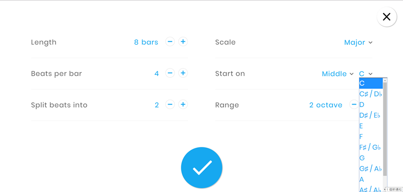 樂譜長度還有開始的音調都能視需求設定,如果不是很確定效果建議套用前先存檔,不然不好改回來。