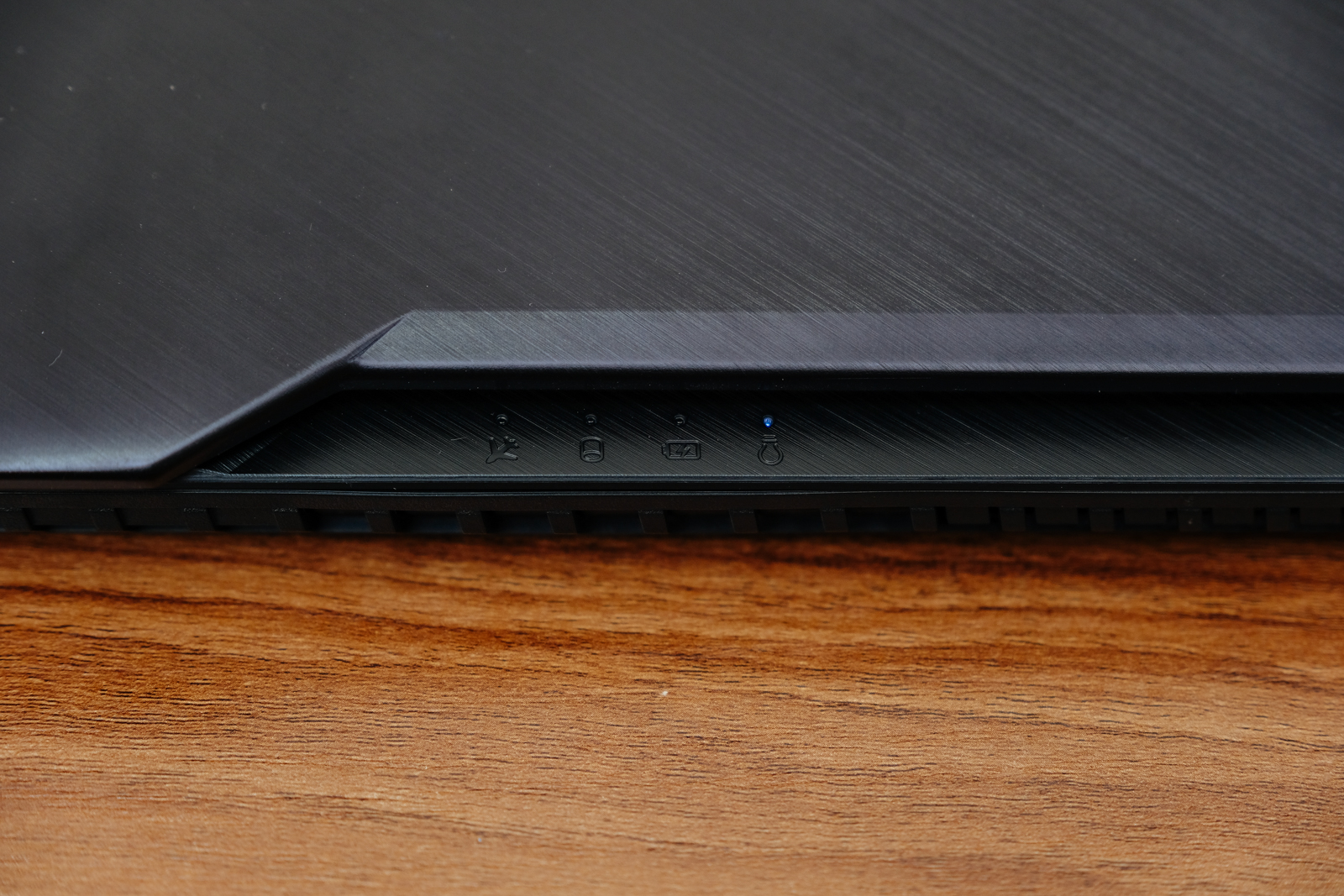 在鍵盤的上方散熱孔週圍也採用了髮絲紋設計。
