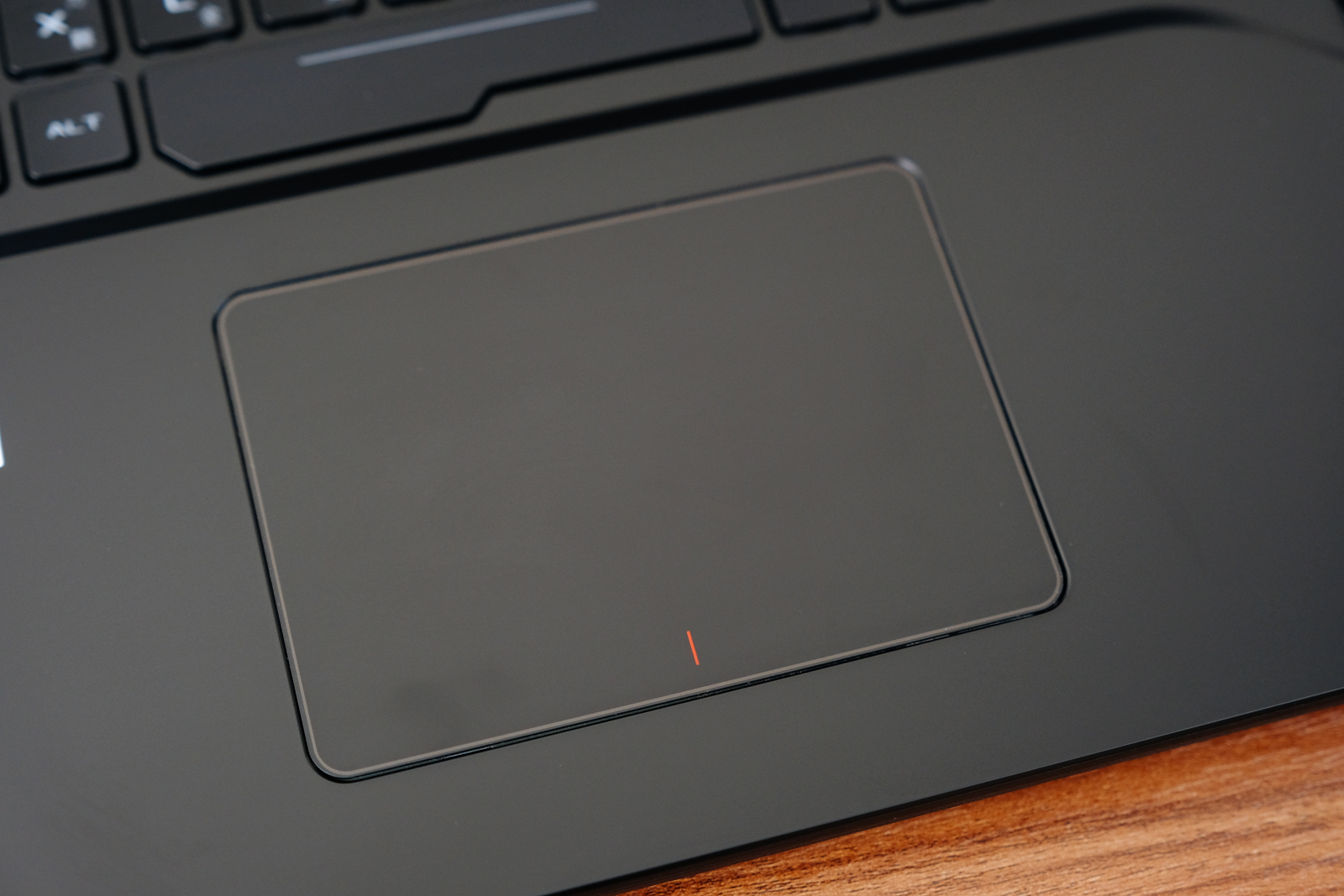 由於擁有 17.3 吋大螢幕,鍵盤也因此可以配置更多按鍵,右側是包括數字鍵的全按鍵鍵盤,採用孤島式全尺寸背光鍵盤、鍵帽弧度 0.25 mm,最常用的 WASD 鍵僅在邊邊加白,看起來低調需多,按鍵也相當安靜,玩遊戲帶個耳機,大概只會剩下滑鼠點擊聲了。