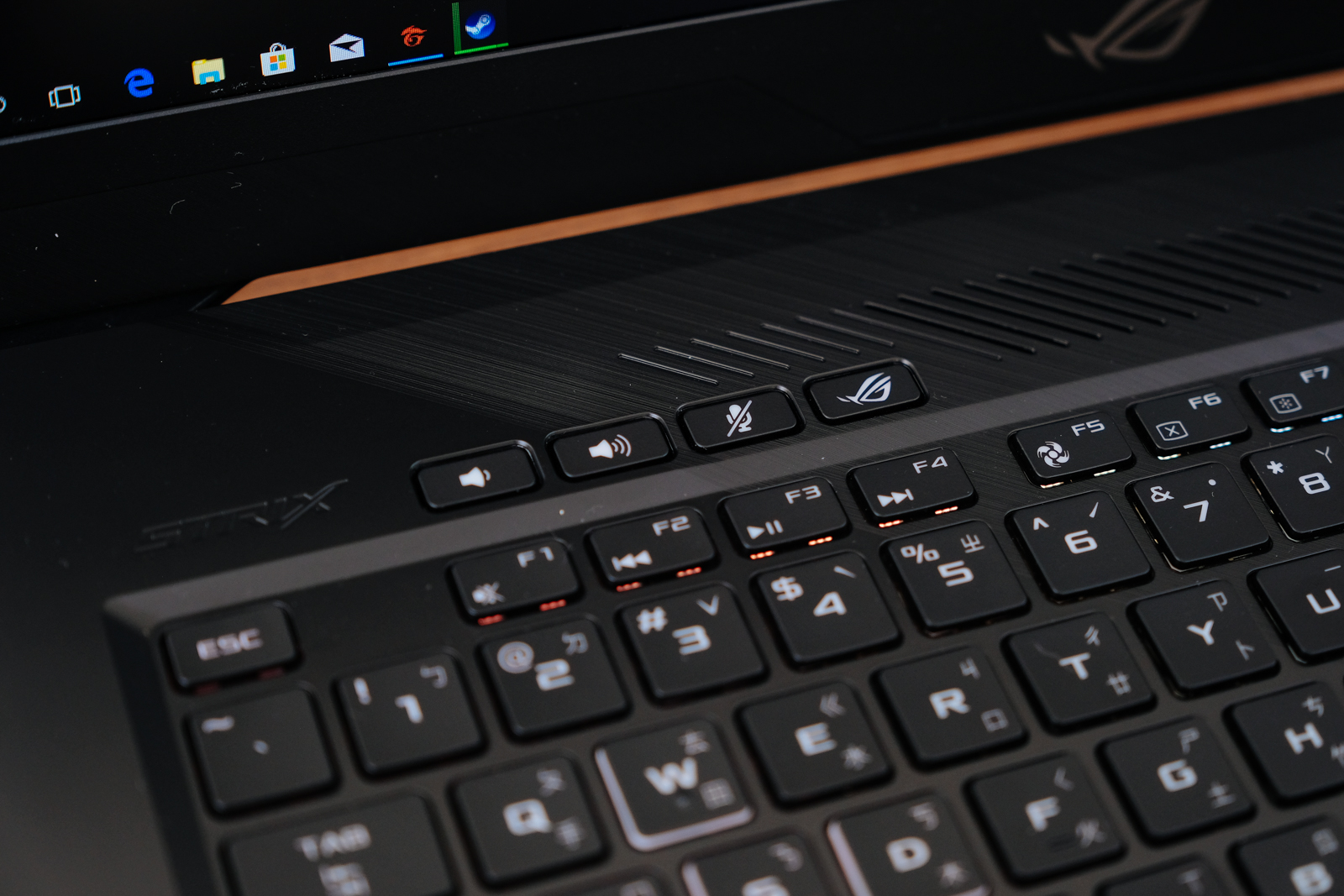 在左上角還有音量鍵、麥克風開關之外,還有一顆 ROG 敗家之眼快捷鍵,你可以在 ROG 電競中心裡設定作用。