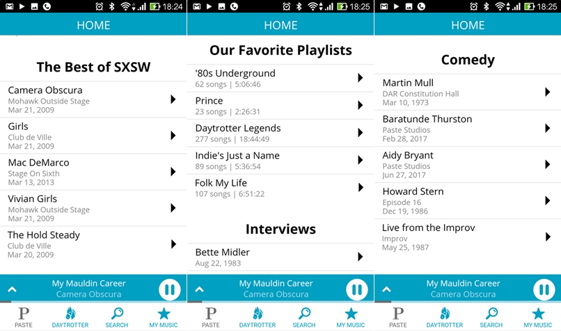 Stream,這篇要分享的比較特別,「Paste Music & Daytrotter」收集了上萬首 Live 音樂,包含演唱會、採訪、喜劇表演等類型,跨越的年代很廣,從 50 年代起各種不同流派都有,也能自訂歌單,喜歡聽現場音樂的朋友千萬不要錯過。