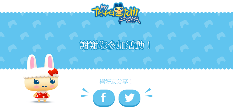 很簡單吧,快傳給朋友一起來碰碰運氣,看看會不會被抽中成為新角色,可直接點 FB 或 Twitter 按鈕分享。