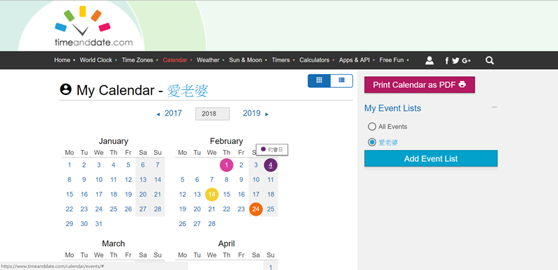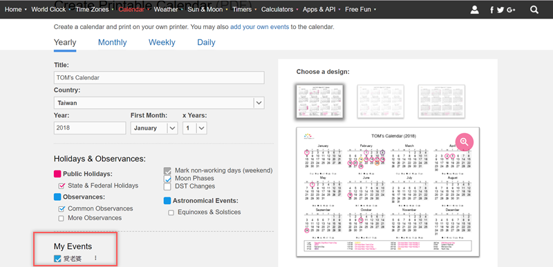2018 年月曆自己做,上傳相片線上快速產出,你也可以成為月份明星」意外大受歡迎,後來有網友問有沒有類似的產生器,想要自己印出來當桌曆,阿湯在「timeanddate.com」這個網站的其中一項分類,找到日曆製作的功能,可以自己決定標題、字體等樣式,還能加入個人行程,雖然 2018 年已經過了兩個多月,但現在做一個好看的行事曆還來得及,不然預做一款 2019 年的也可以。