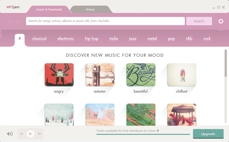 免費的音樂搜尋+下載工具,阿湯介紹的都是線上版比較多,因為免安裝不佔電腦空間,不過如果想要比較好管理自己的音樂庫使用桌面版還是比較方便的,今天就來分享「MP3jam」這套軟體,收藏超過 2000 萬首線上音樂,可以依照風格、情境、或輸入關鍵字,搜尋結果的精確度很高,除了會自動照最新、最受歡迎排序,還會過濾掉品質不好的影音,速度也蠻快的,算是簡單又好操作的 MP3 轉檔軟體。