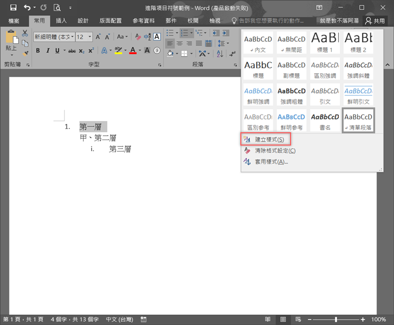如何建立多層次清單並套用樣式?