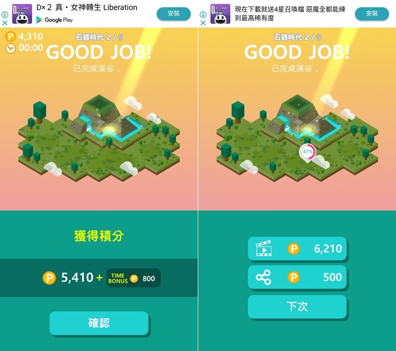 連勝可取得額外的獎勵積分,速度快也可以,就這樣慢慢玩慢慢蓋,等升級更新。